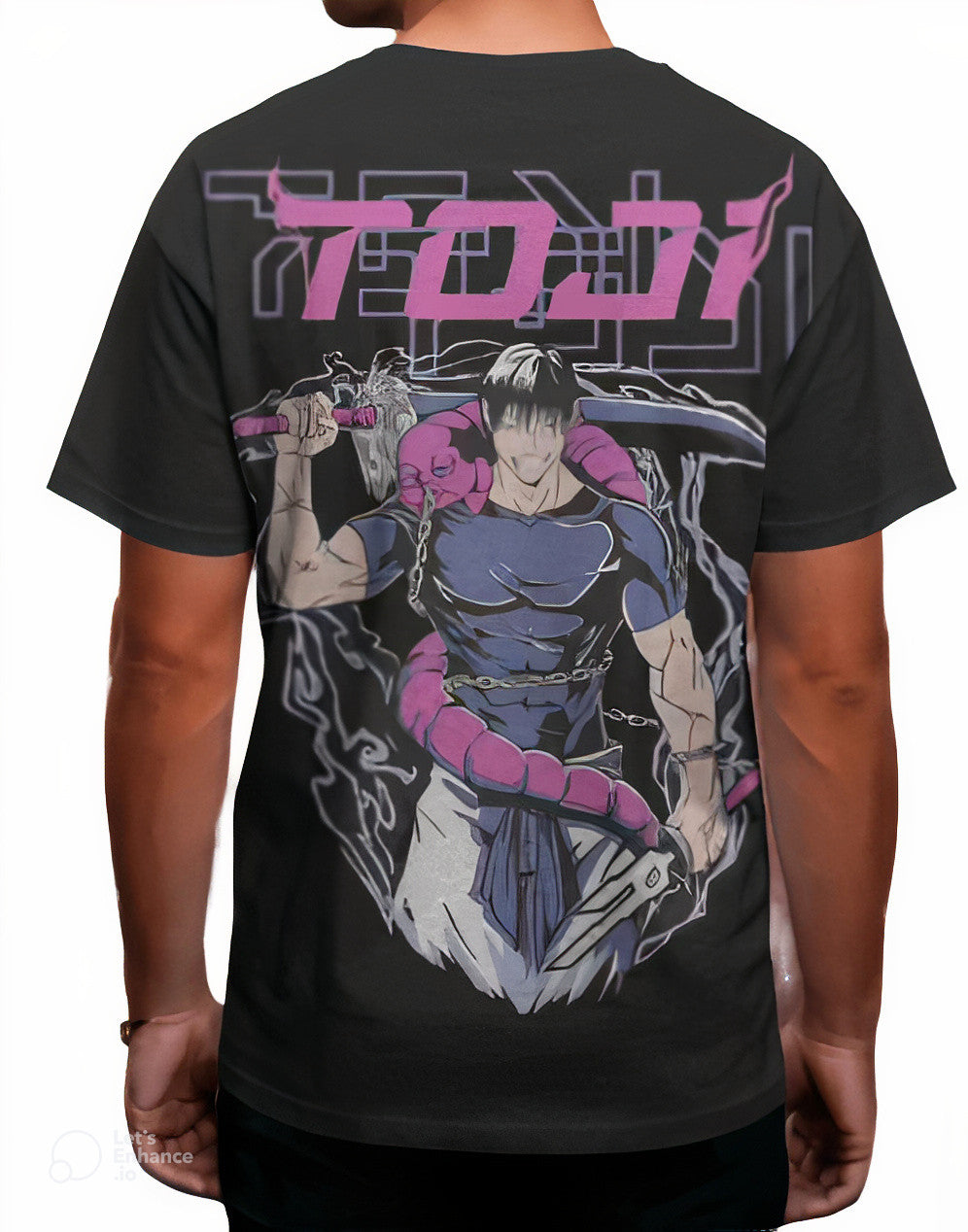 This bold Toji Fushiguro full-color anime t-shirt blends fierce character art and electric visual energy. Featuring a large back print of Toji with his trademark physique, weapons, and cursed spirit chains, this is for the fans who want to rep raw energy and unbeatable style.